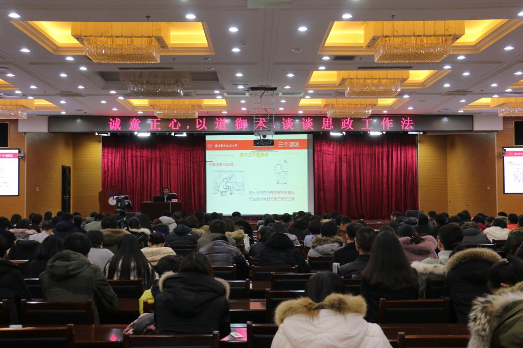 11月27日上午,黨的十九大代表、全國輔導員年度人物、南京航空航天大學馬克思主義學院黨總支書記徐川做客我校青年講壇,在主樓一樓報告廳為我校師生作以“誠意正心,以道御術”為題的思政工作法講座,宣傳黨的十九大精神。校黨委副書記丁宏、我校相關職能部處負責人、各學院主管學生工作領導、全校團干部、輔導員、各校...