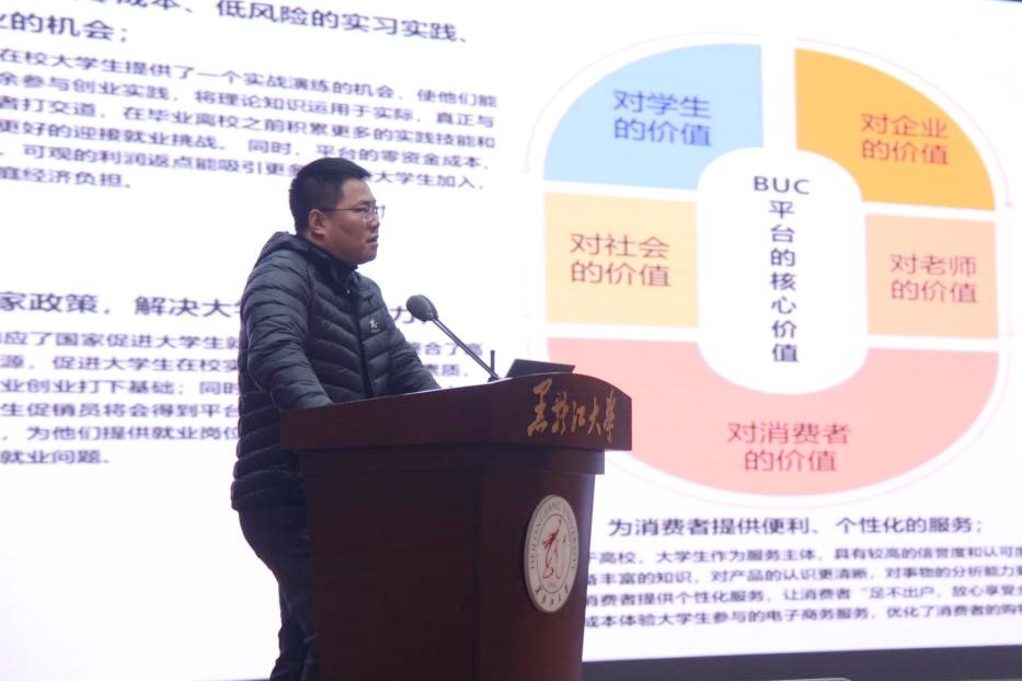 游文超董事長以 “全鏈路實戰賽保障服務,讓師生參賽更輕松”為題,詳細介紹了BUC、鄉村振興、直播電商實戰賽保障服務,并分享了實戰賽優秀案例。