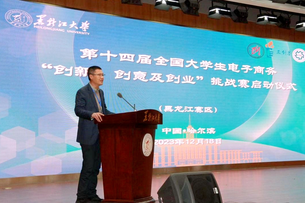 12月18日上午,第十四屆全國大學生電子商務“創新、創意及創業”挑戰賽黑龍江賽區啟動會暨教育部電子商務虛擬教研室基地授牌儀式及校賽負責人和骨干教師培訓會在黑龍江大學主樓一樓報告廳舉行。副校長井立強教授,教育部電子商務類專業教學指導委員會副主任委員、三創賽組委會主席、教育部電子商務專業虛擬教研室建設負責人、西安交通大學李琪教授,教育部電子商務類專業教學指導委員會副主任委員、三創賽組委會副主席、廈門大學彭麗芳教授,三創賽組委會副秘書長、浙江師范大學電子商務研究與發展中心鄒益民主任,三創賽組委會副秘書長、武漢惠贈你網絡科技有限公司董事長游文超先生,三創賽黑龍江省賽區贊助商、省大學生創業融資擔保有限公司副總經理席藝銘女士,我校教務處、信息管理學院、創新創業教育學院相關負責同志,黑龍江省校賽負責人和骨干教師、參賽學生代表參加會議。會議由我校創新創業教育學院院長孫連剛主持。
