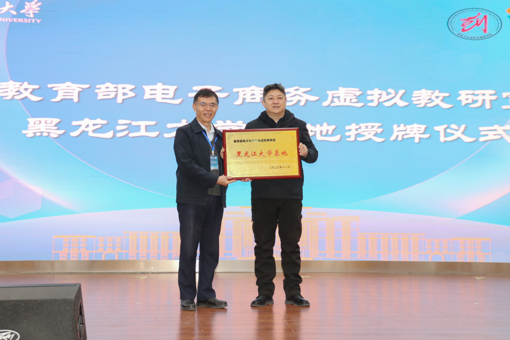 啟動儀式后,教育部電子商務專業虛擬教研室負責人李琪教授與教務處林靖副處長共同參加黑龍江大學電子商務虛擬教研室基地授牌儀式,第十八個教育部電子商務虛擬教研室建設基地落戶黑龍江大學。