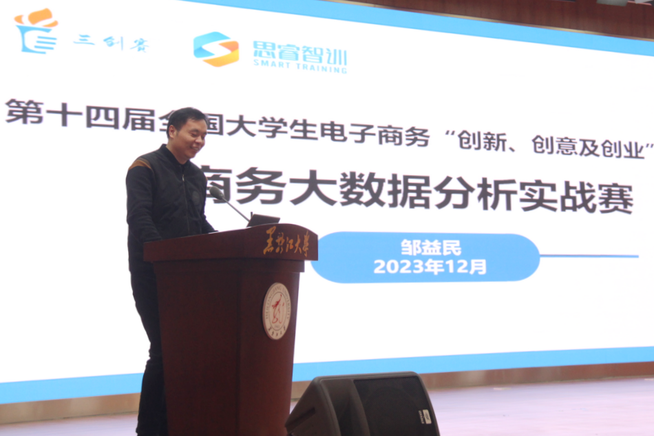 鄒益民主任從競賽的背景與目的、時間和要點、競賽詳情、獎項設置等方面詳細解讀了“三創賽商務大數據分析實戰賽規則”,通過比賽提升數字化、智能化教學,培養高質量就業人才,真正實現崗、課、研、賽、創深度融通。