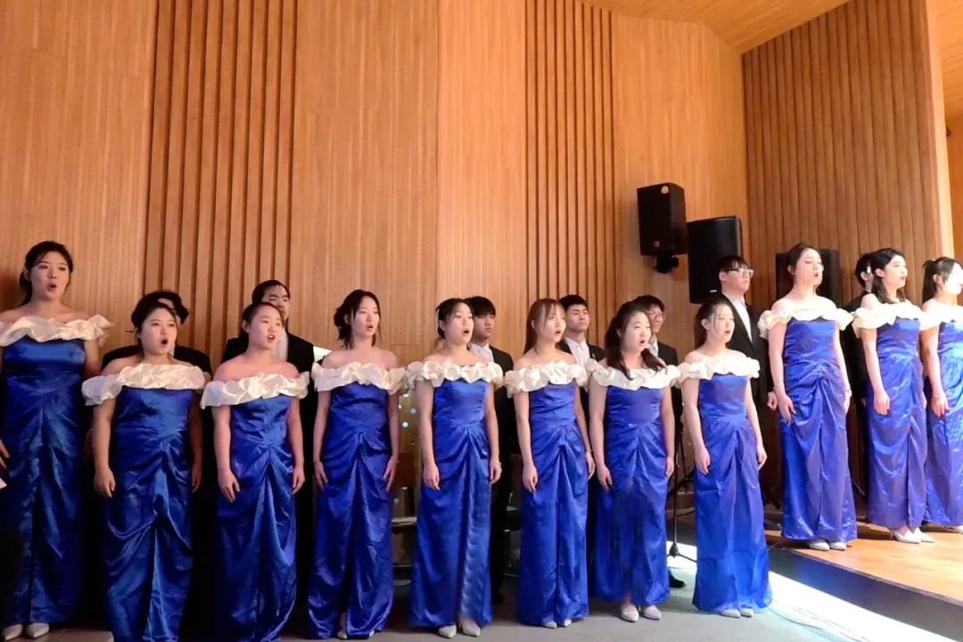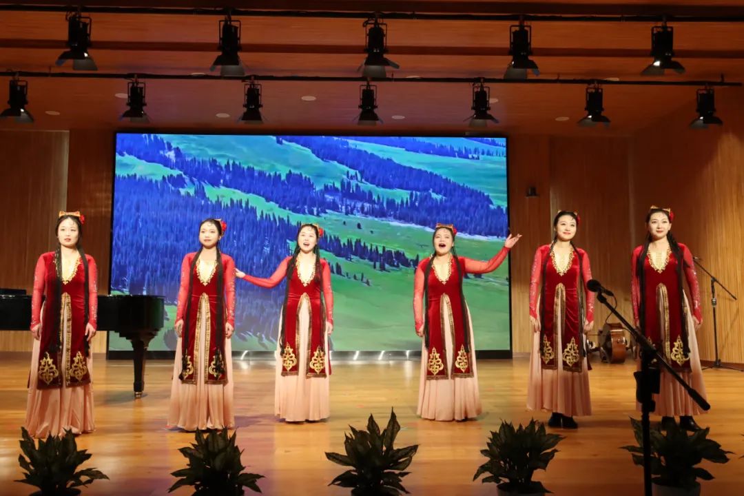 民歌重唱《阿瓦爾古麗+青春舞曲》以超強(qiáng)的感染力呈現(xiàn)出歌曲動(dòng)人的魅力,師生們用激昂的歌聲演繹青春的回響。