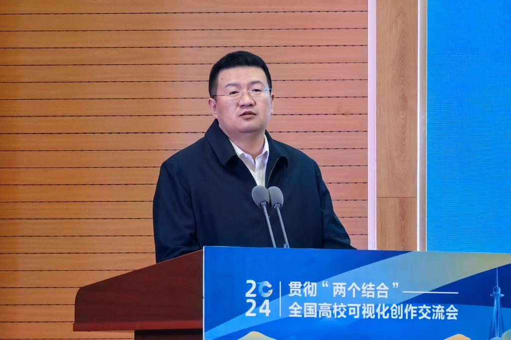 1月24日,由中國(guó)青年報(bào)社、團(tuán)黑龍江省委、中青校媒主辦,團(tuán)哈爾濱市委、黑龍江大學(xué)承辦的貫徹“兩個(gè)結(jié)合”全國(guó)高校可視化創(chuàng)作交流會(huì)在我校主樓一樓報(bào)告廳舉行。中國(guó)青年報(bào)社黨委副書記、總編輯董時(shí),校黨委副書記、校長(zhǎng)王敬波,團(tuán)黑龍江省委副書記張濤,團(tuán)哈爾濱市委書記周成剛以及來自全國(guó)近百所高校的100多名教師參會(huì)。