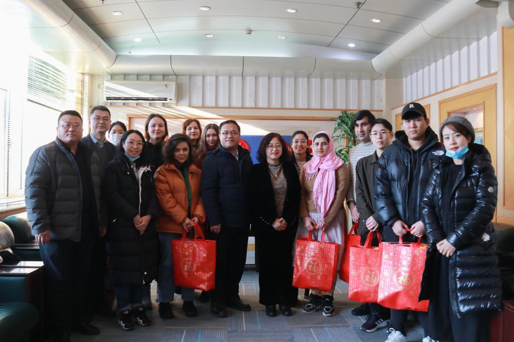井立強詳細了解了來華留學生們的學業及生活情況,并與大家親切交談,鼓勵同學們利用寒假適應來華生活,進一步了解中國的傳統文化,多角度感知中國。