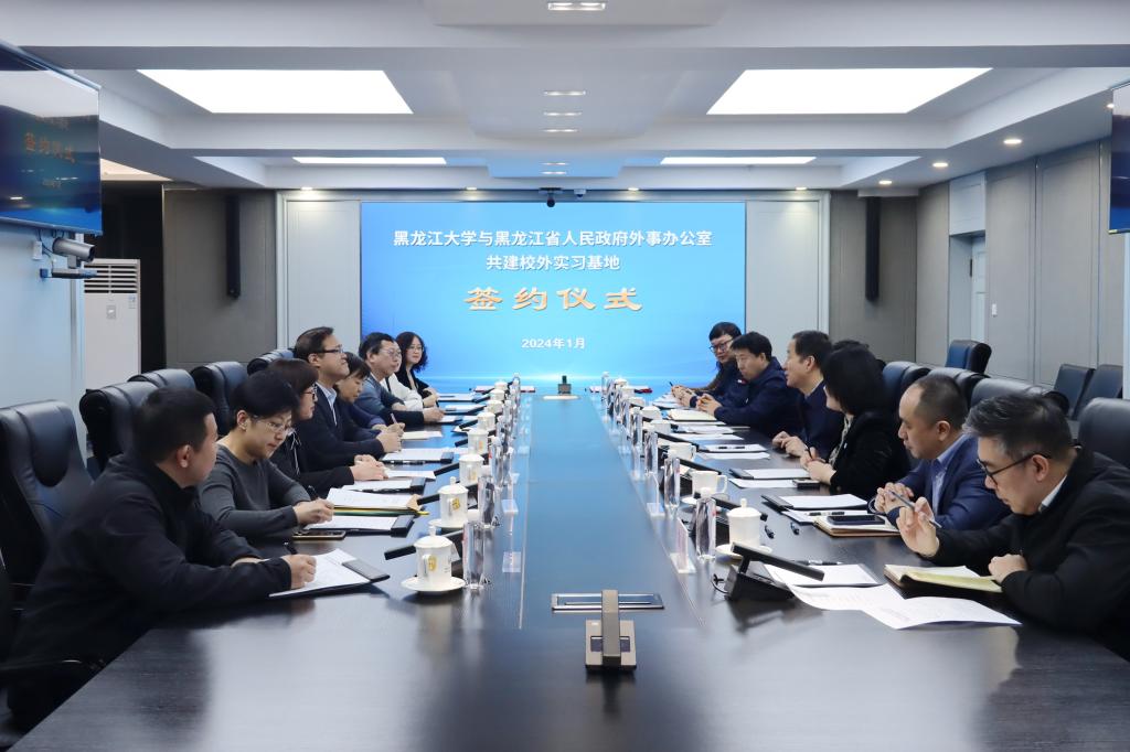 1月31日下午,副校長井立強帶隊赴黑龍江省人民政府外事辦公室開展交流座談,雙方就加強外事合作、共建實習實踐育人基地等相關事宜進行深入交流,同時舉行政校共建校外實習基地簽約儀式。省外辦副主任楊鴻鵬出席活動,省外辦人事處、美大處、歐非處、歐亞處、東北亞處、亞洲處相關負責人,我校東語學院、俄語學院、西語學院、應用外語學院、外事處相關負責人參加座談。