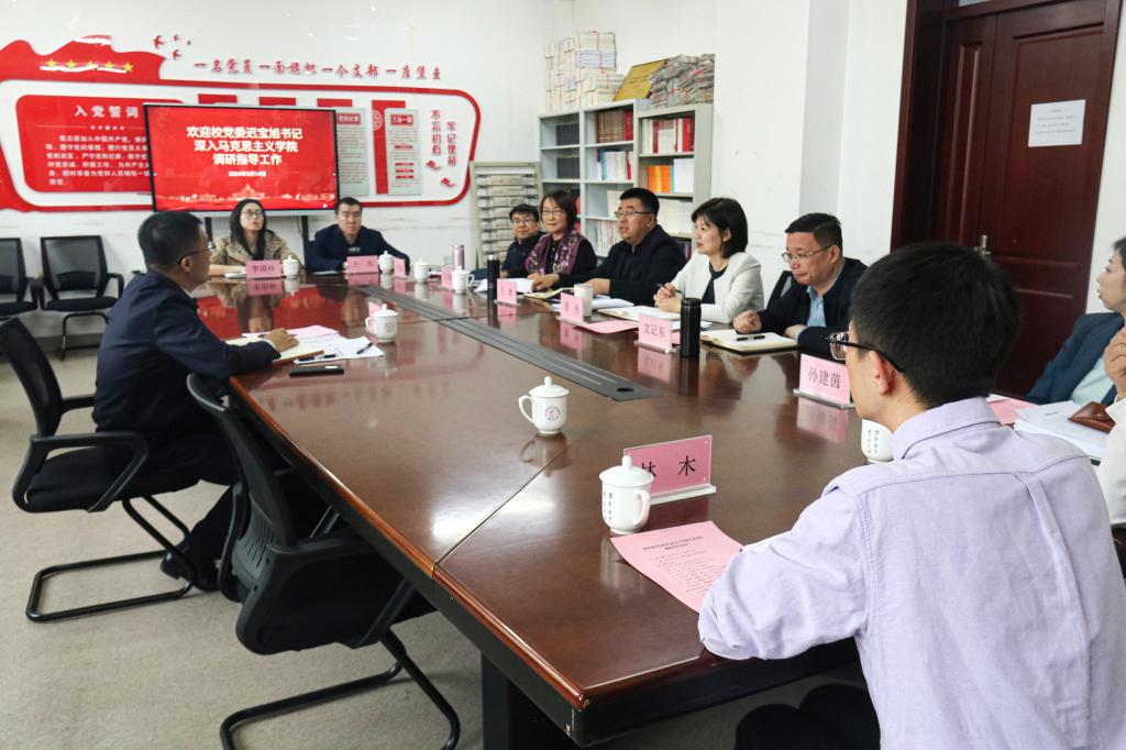 為貫徹落實習近平總書記關于學校思政課建設的重要指示精神,進一步推進新時代思政課守正創新,5月14日下午,校黨委書記遲寶旭到馬克思主義學院調研指導學院工作。學院領導班子成員、學科帶頭人、黨支部書記和教師代表參加會議。會議由學院黨總支書記張丹主持。