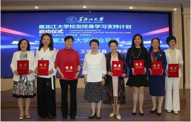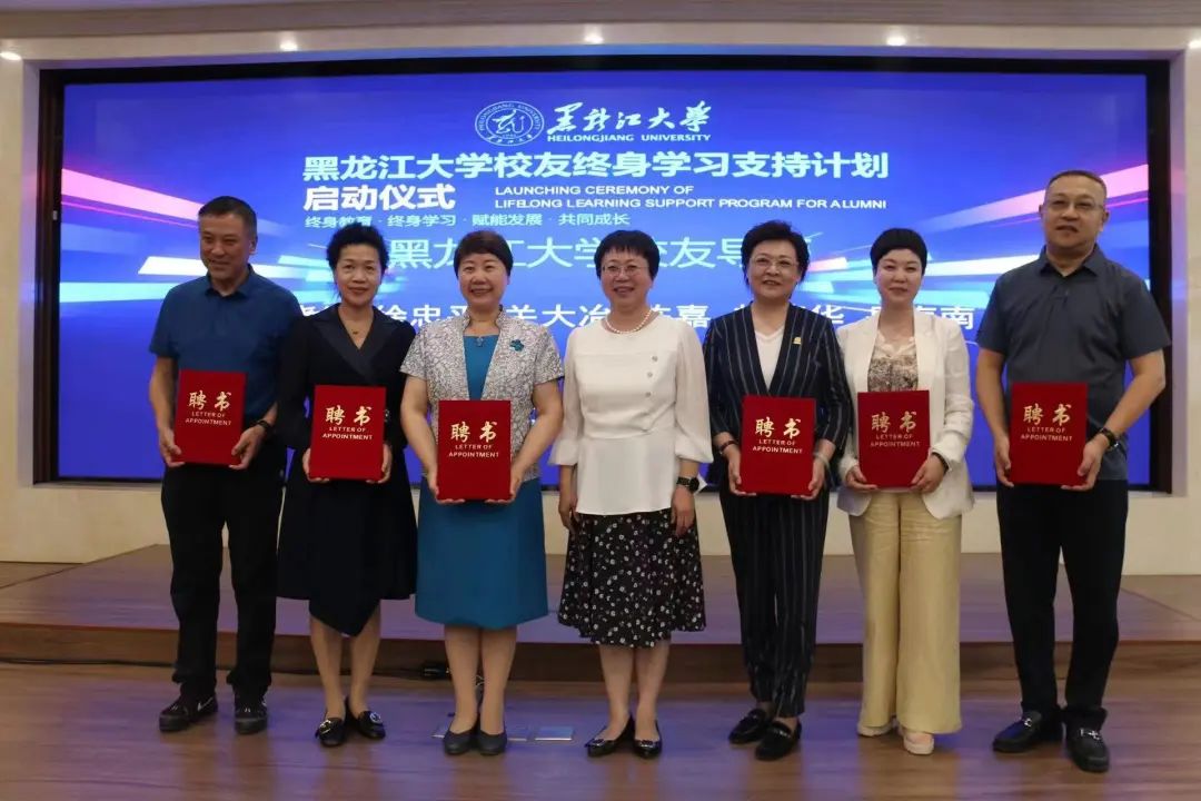 王敬波、李卓、焦方義、趙曉紅、仲兆敏、徐忠平共同啟動黑龍江大學校友終身學習計劃。