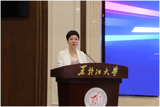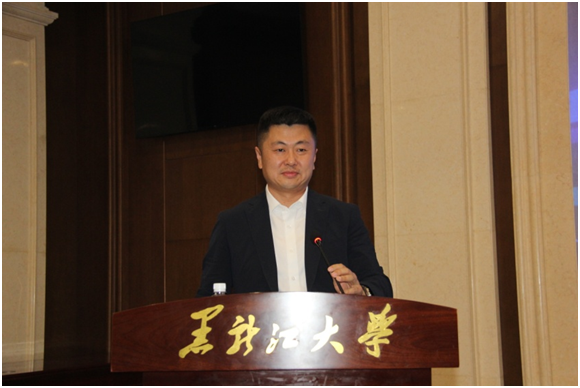王敬波校長在講話中介紹了學校的發展情況,向校友對母校的支持和奉獻、向社會各界對黑龍江大學的關心與關注表示衷心的感謝。她指出,黑龍江大學83年的辦學歷史,就是83年的對俄辦學史,在俄語高層次人才培養模式創新、培養體系構建、培養規模壯大等方面開創了數個“新中國第一”和“國內唯一”。鮮明的對俄辦學特色使黑龍江大學立于中國高等教育版圖,擁有彪炳史冊的成就和不可比擬的優勢。學校每一項成就的取得,都離不開廣大師生、校友的鼎力支持。“全體黑大人是牢不可破的命運共同體”這一共識,在一代代黑大人的共同奮斗中被踐行和印證。她表示,校友終身學習支持計劃的啟動與施行,既是黑龍江大學作為高等教育機構義不容辭的使命擔當,也是學校遵循反哺校友、服務校友的初心,為校友搭建終身學習、賦能發展的平臺,從而更好地推動和實現校友與母校雙向奔赴、合作共贏。王敬波校長特別感謝了出席啟動儀式的企業家代表。她說,黑龍江大學是名副其實的龍江人民子弟校,服務龍江是學校的第一使命,服務龍江企業更是黑大人當仁不讓的責任。學校希望自身眾多的科研成果能夠為企業發展服務助力,同時也希望以企業為師,互相學習,加強合作,共同成長和進步。通過校企合作推進產學研用一體化的積極實踐,更好促進高校履行人才培養、科學研究、服務社會、文化傳承、國際傳播的大學使命。
