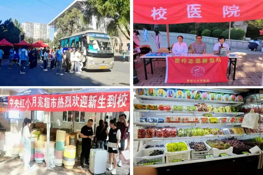 報到當天,學校在哈爾濱站、哈爾濱西站設置了接站點,校內安排中轉車和近千名志愿者,設置黨員先鋒崗,手遞手護送新生到公寓樓。