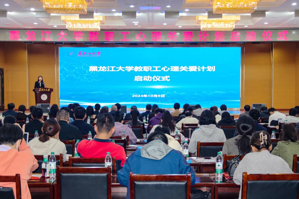 會上,與會領導共同上臺啟動黑龍江大學教職工心理關愛計劃。