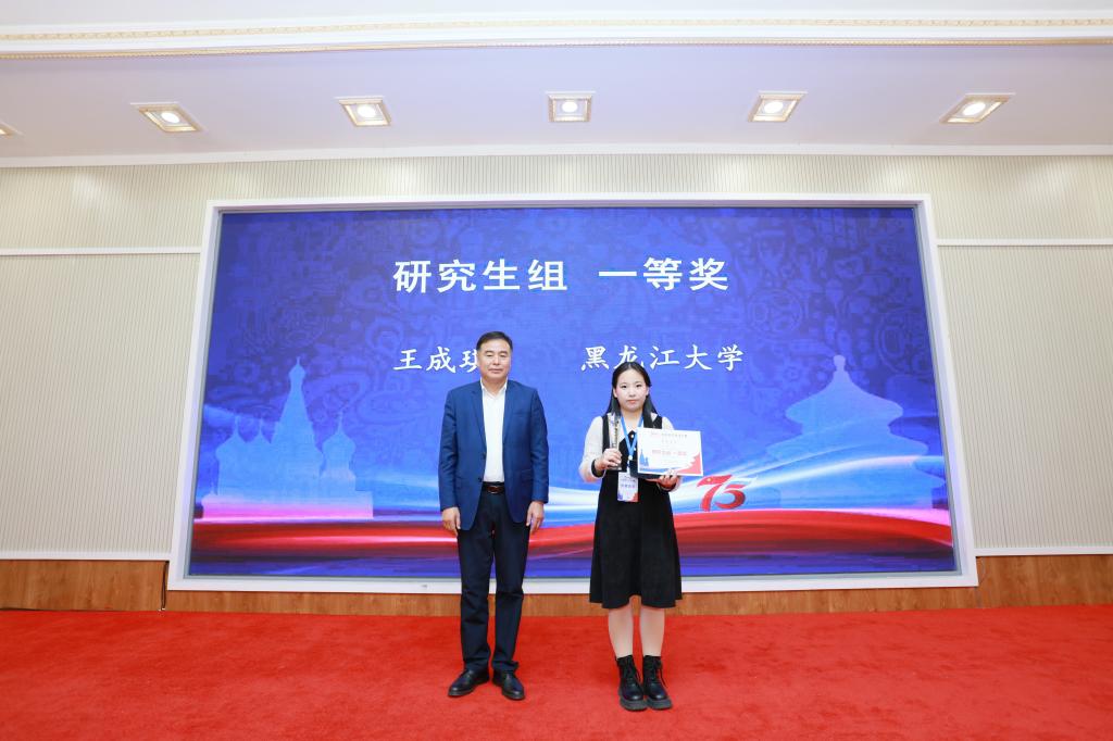 與會評委、嘉賓為獲獎選手頒發獎杯和獎狀。獲獎選手將由國家留學基金管理委員會秘書處全額資助赴俄羅斯進修或攻讀學位。