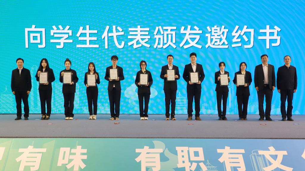 活動現場,臺州市農業農村局黨組書記、局長徐華發布“青年英才聚臺州 我在臺州有個村”現代新農人招募令,并為黑龍江大學學生代表頒發邀約書。