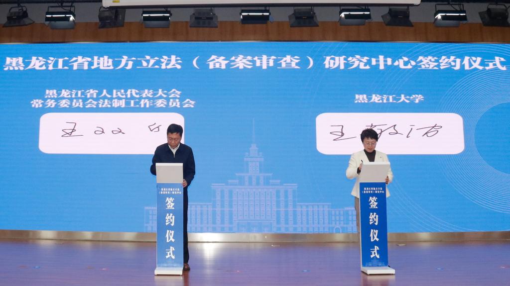 儀式上,省人大常委會法工委主任王雙近分別與哈爾濱工業大學、黑龍江大學、哈爾濱工程大學、東北林業大學、東北農業大學、哈爾濱師范大學簽約。
