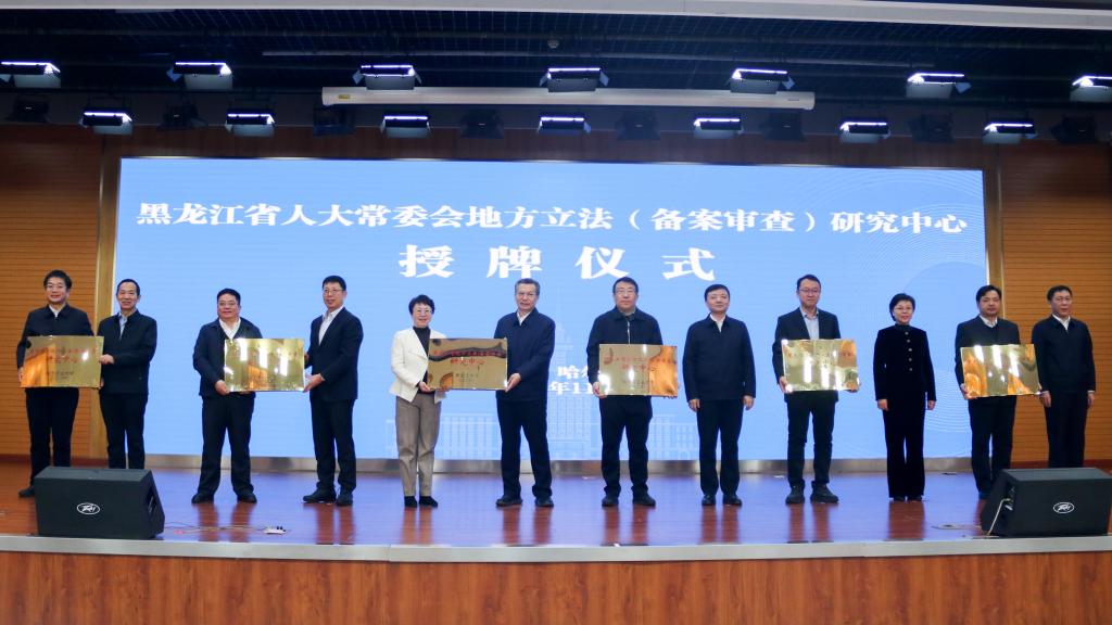 11月12日上午,黑龍江省地方立法(備案審查)研究中心簽約和授牌儀式在我校主樓一樓報告廳舉行,省人大常委會黨組書記、副主任王永康出席簽約和授牌儀式并講話。省人大常委會副主任楊廷雙,哈爾濱工業大學黨委常委、副校長劉挺,黑龍江大學黨委書記遲寶旭、校長王敬波,哈爾濱工程大學黨委常委、副校長嚴汝建,東北林業大學黨委常委、副校長李明澤,東北農業大學黨委副書記賀景平,哈爾濱師范大學黨委常委、副校長尹劍鋒,省人大常委會副秘書長,省人大法制委,省人大常委會法工委、常委會辦公廳有關負責同志,以及研究中心特聘研究員代表及我校法學院師生代表參加儀式。省人大常委會黨組成員、秘書長韓嘉彬主持儀式。