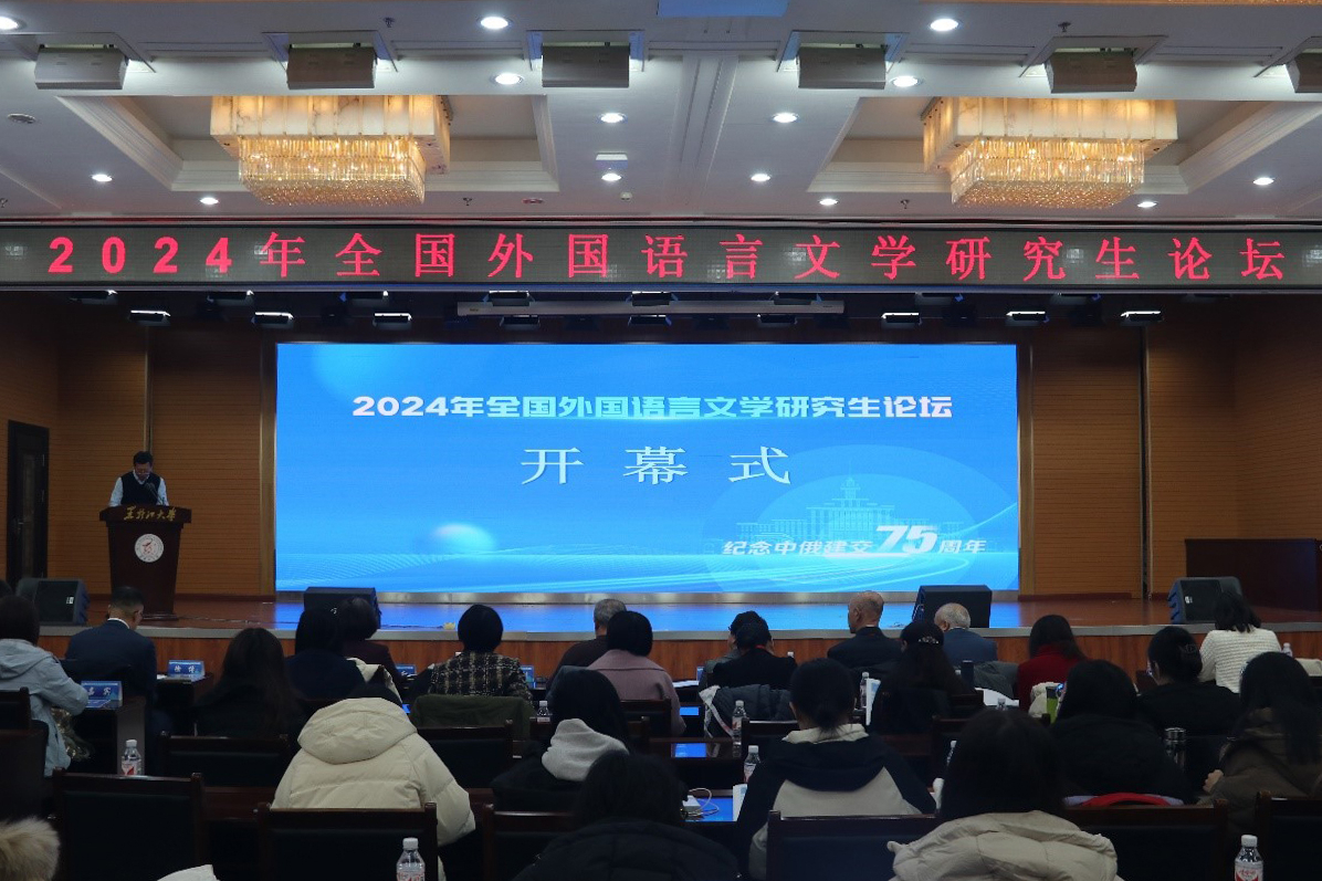 11月23-24日,由我校研究生院、俄語學院、高級翻譯學院、俄羅斯語言文學與文化研究中心、外國語言文學學院(區(qū)域國別學院)、《外語學刊》編輯部共同主辦的“2024年全國外國語言文學研究生論壇”在主樓一樓報告廳召開。校長王敬波,研究生院、黑龍江大學出版社等部門負責同志,以及來自全國外語學界的十余位專家、百余名研究生代表出席開幕式。開幕式由黑龍江大學高級翻譯學院院長孫超主持。