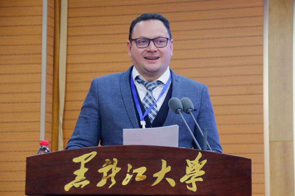12月11日上午,2024中俄語言教育大學聯(lián)盟年會在黑龍江大學主樓一樓報告廳召開。黑龍江省教育廳副廳長曹疊峰,莫斯科國立語言大學第一副校長佩特魯恰克,西伯利亞聯(lián)邦大學副校長韋爾哈韋茨,坦波夫國立大學副校長古謝夫,黑龍江大學校長王敬波,北京第二外國語學院校長計金標,廣東外語外貿大學副校長劉建達,延邊大學副校長張學武,貴州師范大學副校長乙引,以及中俄雙方30余所高校100余名代表出席會議。本次會議由黑龍江大學副校長井立強主持。