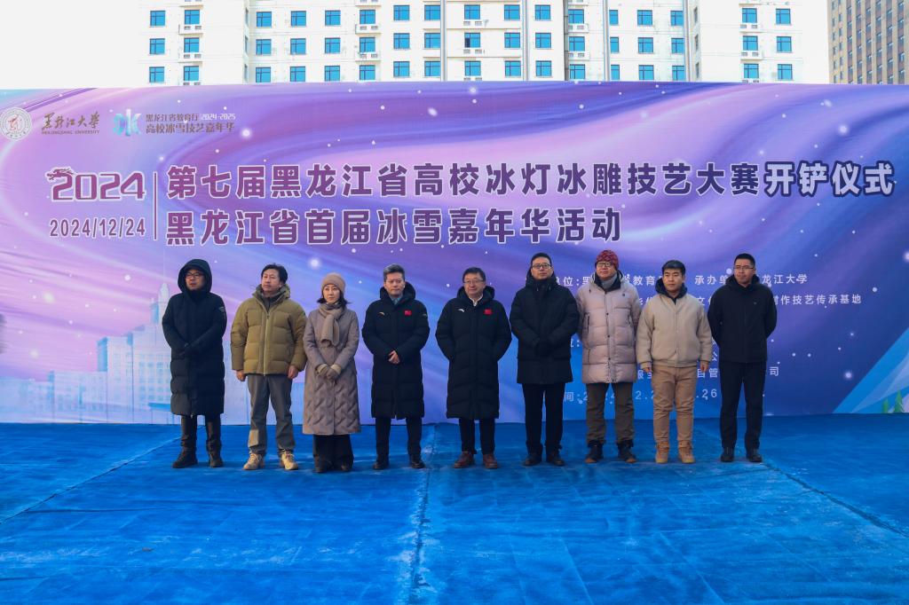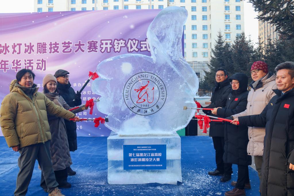 12月24日上午,第七屆黑龍江省高校冰燈冰雕技藝大賽開鏟儀式在我校晨曦廣場舉行。校黨委副書記李君明、省教育廳體衛藝處處長何永祥、省藝術設計協會冰雪雕藝委會會長侯衛東、省美協雕塑藝委會主任洪峰出席本次活動。學校相關單位負責人及來自全國和國際高校的50組參賽隊伍參與本次活動。藝術學院黨委書記朱清桃主持活動。