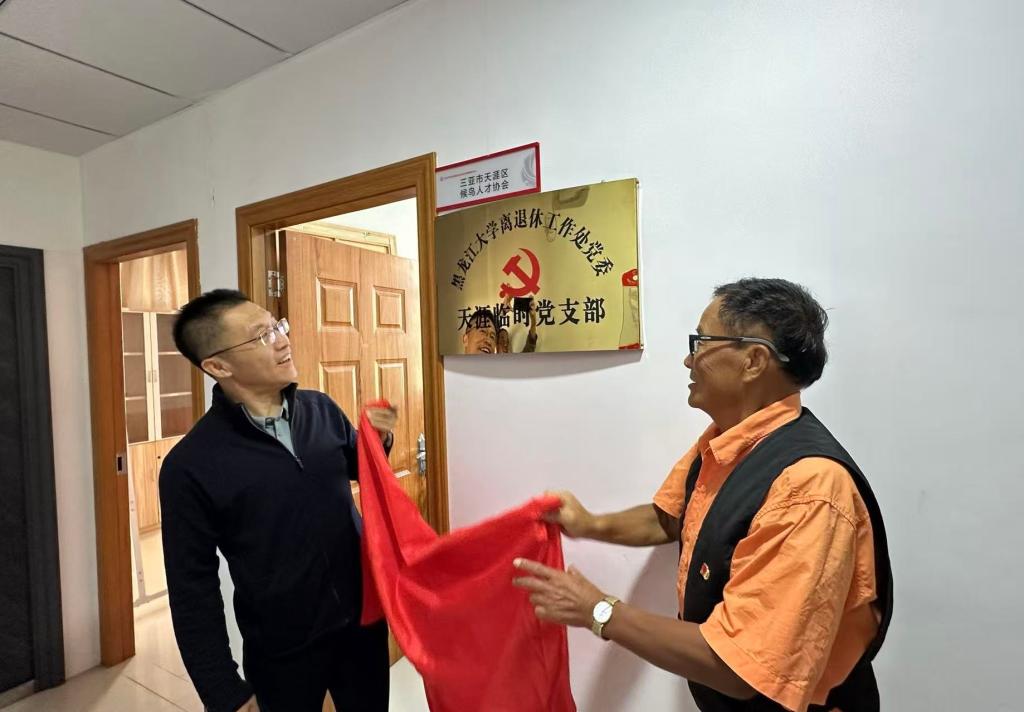 座談會氣氛熱烈,遲寶旭為黑龍江大學離退休工作處黨委天涯臨時黨支部和崖州臨時黨支部揭牌,與會人員共同見證了這激動人心的時刻。臨時黨支部書記霍燦如、于泉分別發言,他們表示,將做好黨員之家建設,離鄉不離黨,退休不褪色,發揮黨員先鋒模范作用。