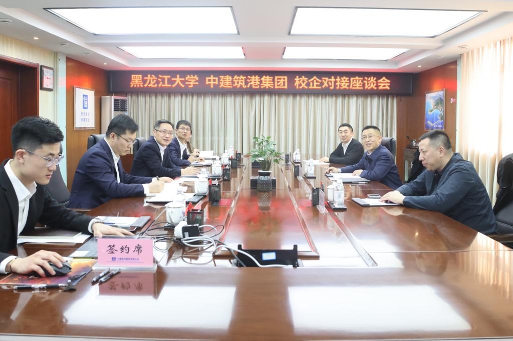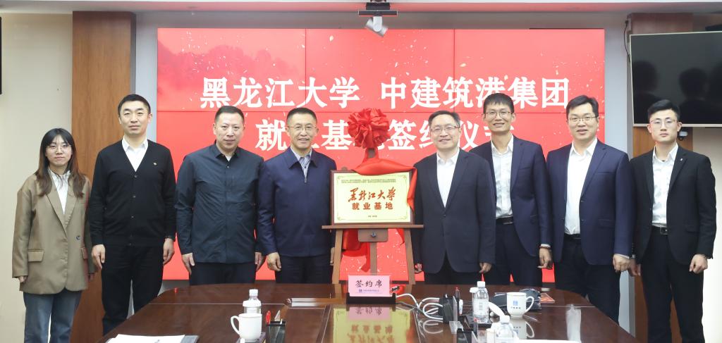 遲寶旭與中建筑港集團(tuán)黨委副書記于建勇共同為黑龍江大學(xué)就業(yè)基地揭牌。招生就業(yè)指導(dǎo)中心副主任李洪明與中建筑港集團(tuán)人力資源部總經(jīng)理朱廣志簽訂就業(yè)基地人才合作協(xié)議。