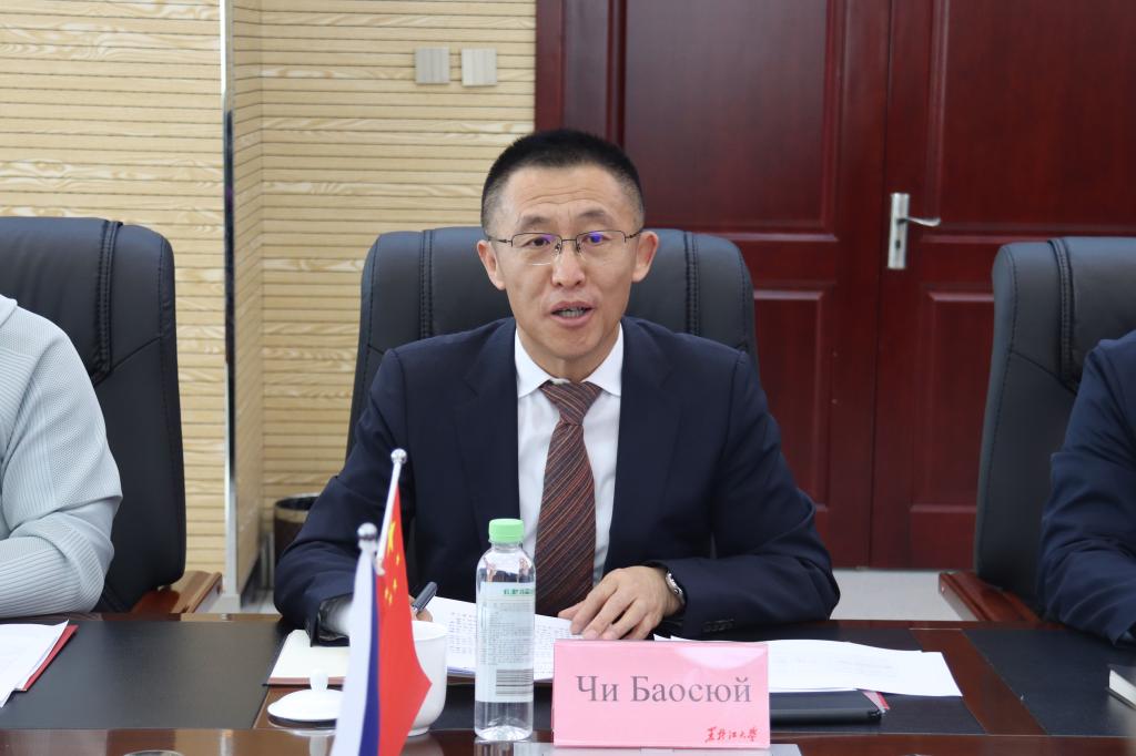 遲寶旭在致辭中向俄方代表表示熱烈的歡迎和誠摯的問候。他表示,兩校合作歷史悠久,成果豐碩,擁有深厚的情誼和巨大的合作潛力,未來,希望雙方能繼續發揮各自優勢,共同探索中俄教育合作的新路徑、新模式。他就深化雙方合作提出三點建議:一是要立足黑大俄語優勢,促進俄語教育合作,培養國際化人才;二是要拓展學術研究交流,增加兩校師生流動,推動學術發展與創新;三是要加強文化交流互鑒,豐富語言文化交流,共建友誼橋梁。