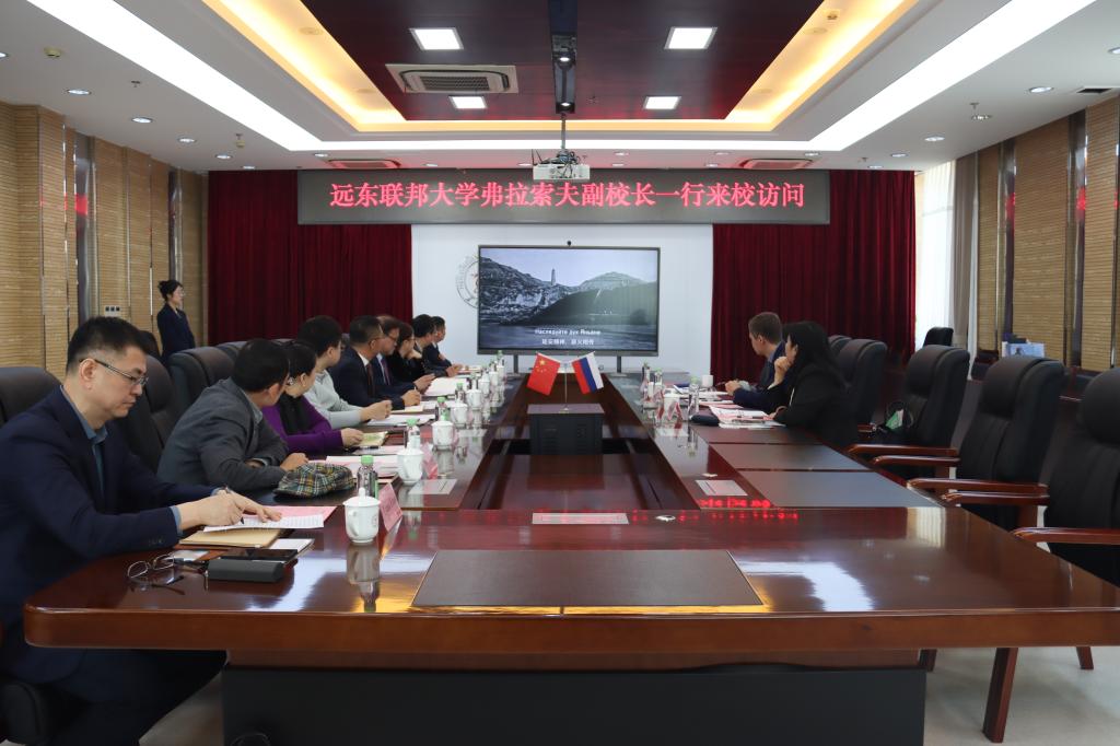 4月3日,遠東聯邦大學弗拉索夫一行來校訪問,并在主樓A802會議室舉行工作會談。校黨委書記遲寶旭、副校長井立強,俄羅斯遠東聯邦大學副校長葉甫根尼·弗拉索夫、孔子學院俄方院長娜塔莉亞·司徒普尼茨卡婭、孔子學院中方院長劉聰穎出席會議,國際合作與交流處、俄語學院、高級翻譯學院、經濟與工商管理學院、俄羅斯語言文學與文化研究中心、國際文化教育學院等相關單位主要負責人參加會議。會議由井立強主持。