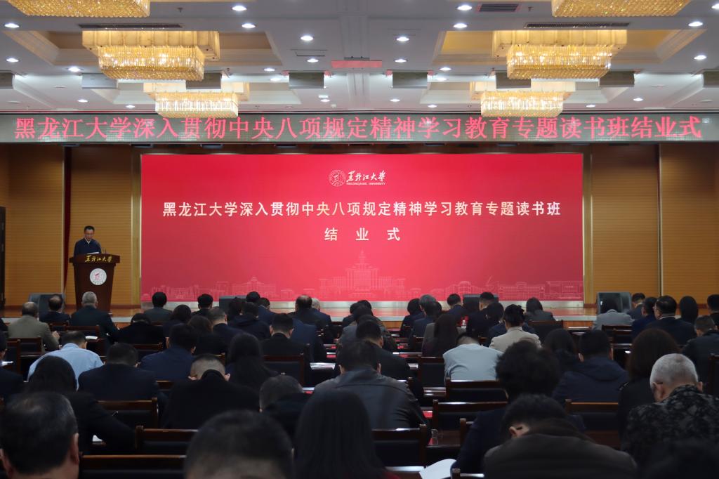 4月8日下午,我校在主樓一樓報告廳舉行深入貫徹中央八項規定精神學習教育專題讀書班結業式。校黨委書記遲寶旭主持結業式并講話。