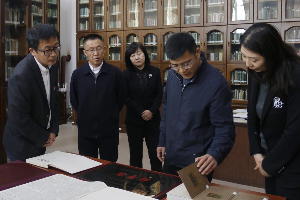 會前,黃海華一行參觀了俄語學院,深入了解學校俄語學科的發展概況、學科建設和科研成果。(攝影:葛佳勒 于珊珊 寧寶蕊)