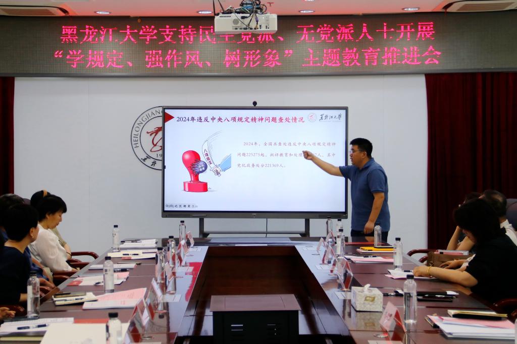 會(huì)議集體學(xué)習(xí)了習(xí)近平總書記關(guān)于深入貫徹中央八項(xiàng)規(guī)定精神學(xué)習(xí)教育的重要講話和重要指示精神,傳達(dá)了《黑龍江大學(xué)關(guān)于支持各民主黨派、無黨派人士開展“學(xué)規(guī)定、強(qiáng)作風(fēng)、樹形象”主題教育的實(shí)施方案》。