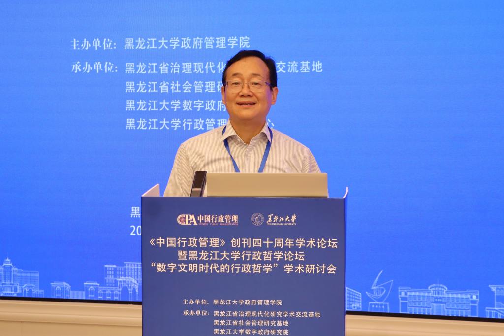《中國行政管理》雜志社社長張定安代表中國行政管理學會和《中國行政管理》雜志社致辭。他指出黑龍江大學公共管理學科經過近40年發展,已經成為全國行政哲學研究陣地和學術高地。近40年來,黑大學人與《中國行政管理》雜志一道共同開拓創新,致力于學科建設和學術共同體建設,共同擔當使命,服務中國政府管理理論和自主知識體系建設,共同砥礪前行,與推進行政管理改革同頻共振,助力國家治理體系和治理能力現代化。