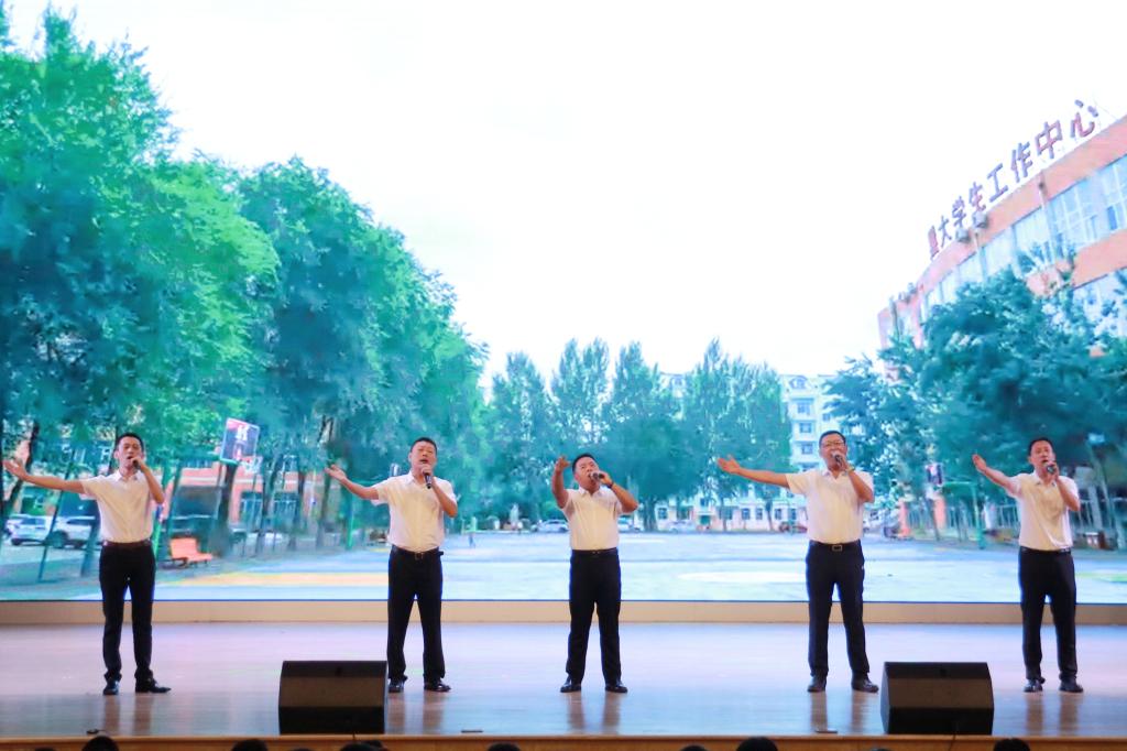 計算機與大數據學院(網絡安全學院)馬吉權、于海洋、趙鵬、徐為、常城五位老師登上舞臺,為全場帶來最新編排的歌曲《篇章》。他們用深情的歌聲,唱出了教育者的初心與夢想,也唱出了黑大人的擔當與希望。慶祝大會在熱烈的氛圍中落下帷幕。(攝影:馮翠芝 趙瑾萱 張心悅 許可 唐德文)