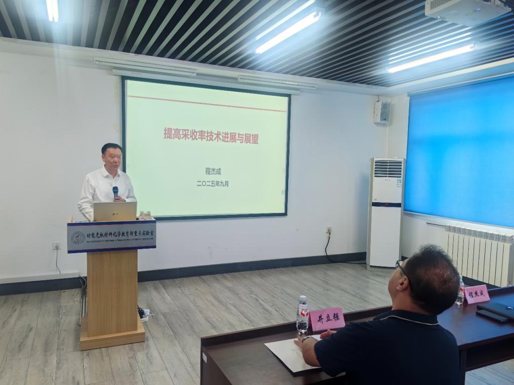 許輝代表學(xué)校對(duì)程杰成院士一行的到來表示誠摯歡迎,并對(duì)其所作的學(xué)術(shù)講座致以衷心感謝。他表示,程杰成院士是油氣田開發(fā)工程領(lǐng)域的頂尖專家,在化學(xué)驅(qū)提高原油采收率領(lǐng)域取得了重要成果,此次座談會(huì)不僅為我校的學(xué)科建設(shè)與產(chǎn)學(xué)研融合注入新動(dòng)能,更為學(xué)校進(jìn)一步契合前沿科技趨勢(shì)、深化與地方實(shí)質(zhì)性合作提供了戰(zhàn)略指引。希望以此次座談為契機(jī),充分發(fā)揮校友等紐帶資源的橋梁作用,聚力賦能,共同服務(wù)龍江振興發(fā)展。付宏剛代表功能無機(jī)材料化學(xué)教育部重點(diǎn)實(shí)驗(yàn)室對(duì)程杰成院士一行參觀座談表示衷心感謝。他回顧了重點(diǎn)實(shí)驗(yàn)室及化學(xué)化工與材料學(xué)院與大慶油田的合作歷程,并對(duì)雙方的未來合作提出了指導(dǎo)建議。他希望以此次座談會(huì)為起點(diǎn),為雙方加強(qiáng)交流并在成果轉(zhuǎn)化領(lǐng)域?yàn)榉?wù)龍江區(qū)域發(fā)展貢獻(xiàn)力量!