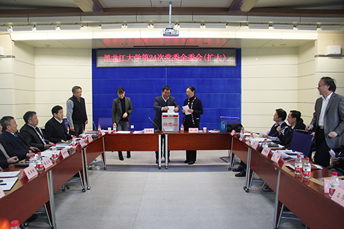 12月28日上午,我校在主樓226會議室召開黑龍江大學黨委全委會(擴大)會議,選舉我校出席省委高校工委黨代會代表。全體校領導、黨委委員、紀委委員、二級黨組織書記出席會議,會議由我校黨委書記劉德權主持。
