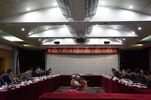 會上播放了江蘇省常州市武進區宣傳片;校黨委副書記曲科軍和戴士福區長分別致辭;嚴明副校長介紹了我校對俄合作情況;華飛部長介紹了武進區的人才政策。