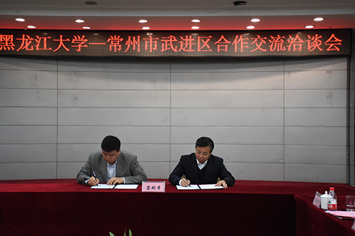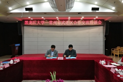 隨后,嚴明副校長與戴士福區長簽署“黑龍江大學與武進區人民政府戰略合作協議”;招生就業處處長李石與武進區中俄科技產業園戴志華書記簽署建立就業實習基地合作協議。