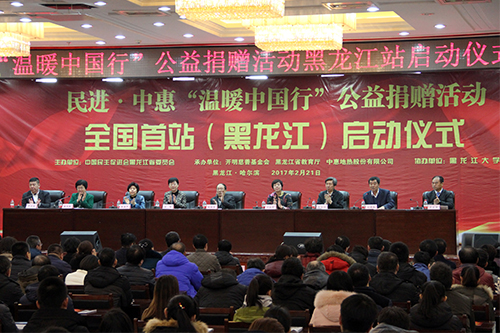 2月21日上午,民進(jìn)·中惠“溫暖中國行”公益捐贈活動全國首站啟動儀式在我校主樓一樓報告廳舉行。省政協(xié)副主席、民進(jìn)省委主委程幼東,民進(jìn)中央社會服務(wù)部副巡視員、開明慈善基金會秘書長寧永麗,省委高校工委書記、省教育廳黨組書記、廳長徐梅,省委統(tǒng)戰(zhàn)部副部長郭龍川,省工商聯(lián)主席張海華,我校黨委書記劉德權(quán),省人大代表、黑龍江中惠地?zé)峁煞萦邢薰径麻L尹會淶等出席了活動。省政協(xié)副秘書長、民進(jìn)省委副主委康鳳英主持啟動儀式。