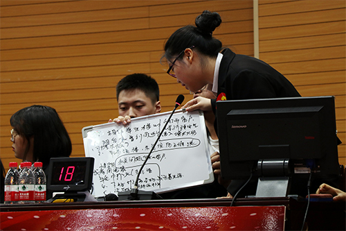 決賽分為七個環節。在經過個人必答、小組必答和實踐操作環節之后,法學院和東語學院暫時落后。隨后的情景分析題和消防知識宣講題加大了對參賽選手邏輯能力和表達能力的考察。在最后的搶答題和風險題環節,工作人員展示了各類消防器材的使用方法。
