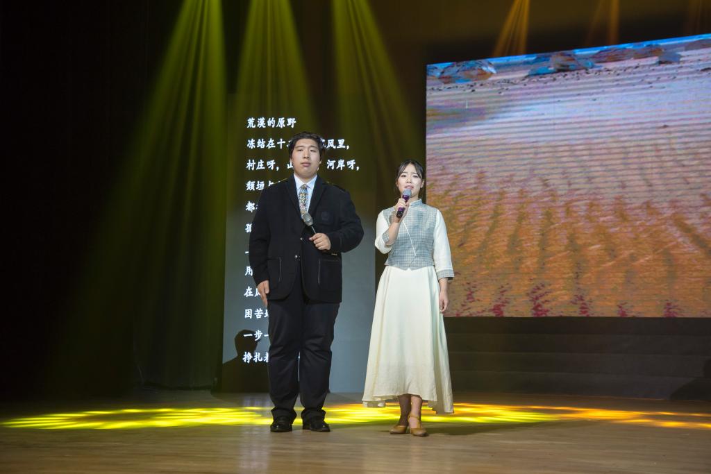 5月10日晚,由我校文學(xué)院策劃、排演的實(shí)踐教學(xué)成果:“新詩百年”詩會(huì)于音樂廳舉行。本次詩會(huì)以回顧新詩歷程、重讀詩歌經(jīng)典的創(chuàng)新實(shí)踐,回眸新詩百年,激揚(yáng)詩意龍江。他們通過詩劇、演唱、朗誦等創(chuàng)新形式深度再現(xiàn)新詩的經(jīng)典篇章,將觀眾帶上時(shí)光穿梭機(jī),共同回味新詩的百年意蘊(yùn)。