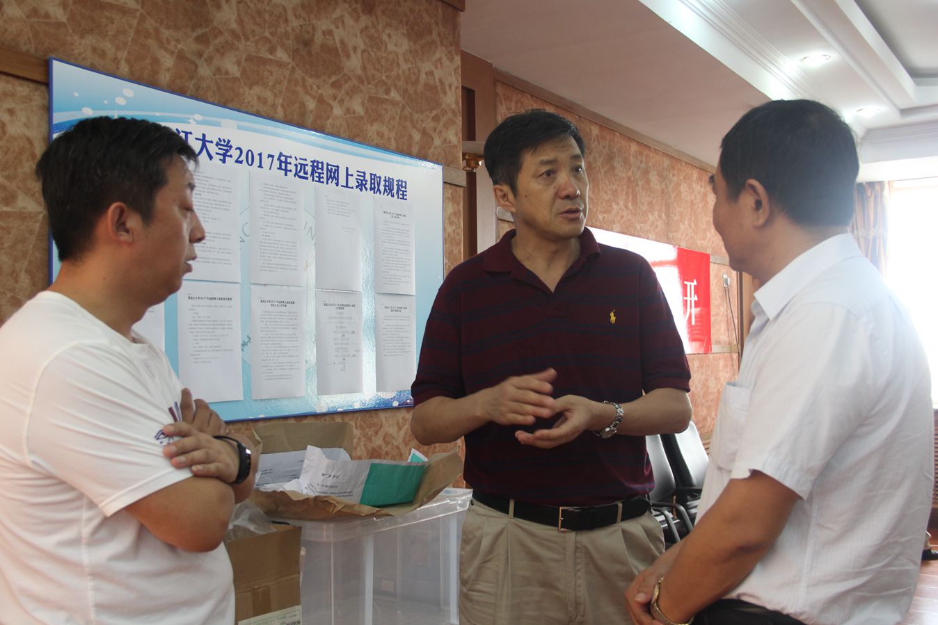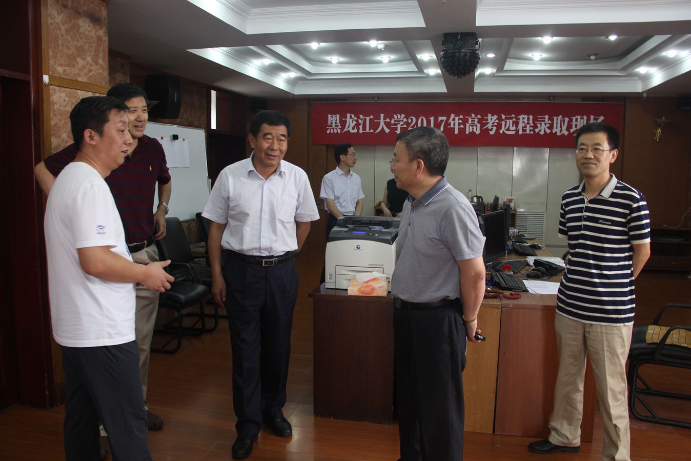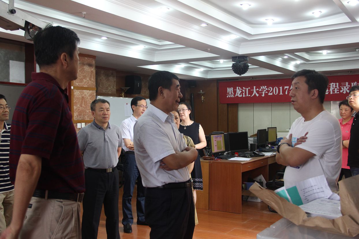 7月8日上午,校黨委書記劉德權(quán)、黨委副書記曲科軍、副校長王司瑜、紀(jì)委書記榮盤祥親臨招生錄取現(xiàn)場,檢查、指導(dǎo)我校2017年高考遠(yuǎn)程錄取工作。招生就業(yè)處李石處長向校領(lǐng)導(dǎo)匯報了目前錄取情況并介紹了招生錄取流程等相關(guān)工作。校領(lǐng)導(dǎo)詳細(xì)的聽取了部分省提前批錄取情況,并觀看了招生工作人員現(xiàn)場演示投檔、閱檔和錄取的全過程。校領(lǐng)導(dǎo)對工作在招生一線的全體人員表示親切慰問,并希望同志們再接再厲,圓滿完成今年的招生工作。