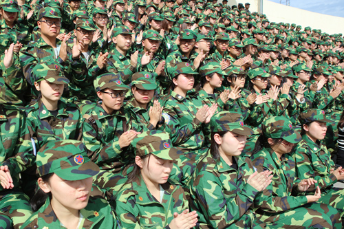 據悉,本次軍訓參訓人員包括學生6748人,教官130名,各學院、各職能部門130余人。軍訓期間,新生將按照《普通高等學校軍事課教學大綱》的有關規定完成《隊列條令》《內務條令》《紀律條令》等學習,將進行校史校情教育、防火防爆安全教育等,還將開展主題演講比賽、大合唱比賽、征文比賽等各類文體活動。(攝影:趙春爭)