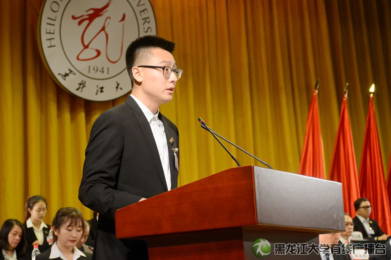新聞傳播學(xué)院童一同學(xué)作為學(xué)生代表發(fā)言。他表示作為當(dāng)代青年,應(yīng)當(dāng)做投身祖國建設(shè)的踐行者,堅(jiān)定理想、胸懷天下;應(yīng)當(dāng)做培育優(yōu)良學(xué)風(fēng)的踐行者,勤奮學(xué)習(xí),刻苦努力。