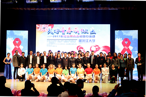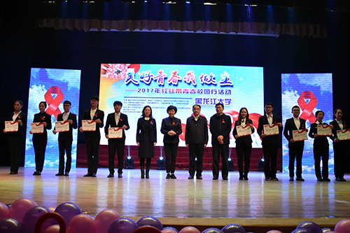 在活動中,我校學生表演了合唱《瞳孔里的太陽》,呼吁大家關注艾滋病,關愛艾滋病兒童;心理情景劇《用愛戰(zhàn)勝愛》講述了一名懷疑自己感染了艾滋病的同學的心理歷程,宣傳了艾滋病的傳播途徑及檢測;《大夢想家》的手語操表演傳遞了溫暖的力量;紅絲帶健康大使沈娜的一曲《我愛你,中國》更是讓大學生們感受到了個人和祖國發(fā)展的密切關系,將現場氣氛推向了高潮。同學們用精彩的文藝演出表達了對艾滋病防控的關注以及對生命的尊重。活動中還舉行了黑龍江省高校“校園防艾宣傳員”的聘任儀式,來自十所高校的10名學生成為了龍江高校群體防控艾滋的新生力量。