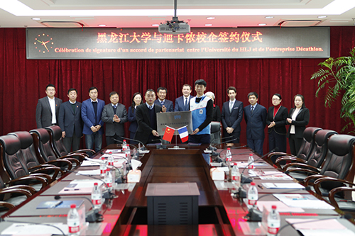 會上,我校與迪卡儂公司簽訂了校企合作協議。