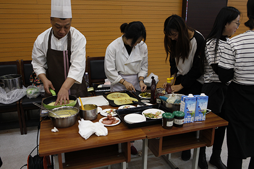 活動現場,同學們積極踴躍地參加文化游戲互動、室內運動競技、品嘗法國紅酒、現場制作法式可麗餅等環節,對法國的教育、運動、飲食文化有了更為深刻的了解。優美的薩克斯風聲音、浪漫的雞尾酒會和激烈的法語猜詞比賽,同學們在現場體驗到了濃郁的法國風情,感受著來自異域文化的熏陶。馬克·拉米總領事參觀了各個展臺并與現場學生親切交流互動。(攝影:車敬楠)
