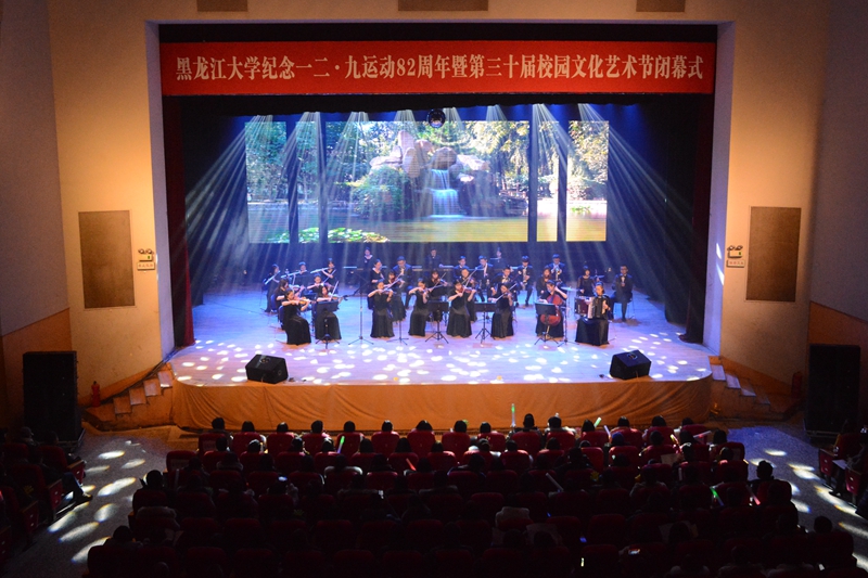 新時代、新夢想,青年學子砥礪前行。新征程、新目標,黑大青年厚積薄發。12月8日晚6時,我校在音樂廳隆重舉行“時代新青年,夢想新征程”紀念一二·九運動82周年暨第三十屆校園文化藝術節閉幕式。校領導劉德權、蔣晶潔、丁宏、榮盤祥、嚴明、陳文遠、張穎春、于文秀、陳德明觀看晚會并為獲獎師生代表頒獎。相關職能部門負責人,各學院院長、書記、主管學生工作領導,全校專兼職團干部、青馬工程黑大菁英大學生骨干培訓班學員代表和學生代表共1000余人參加了晚會。