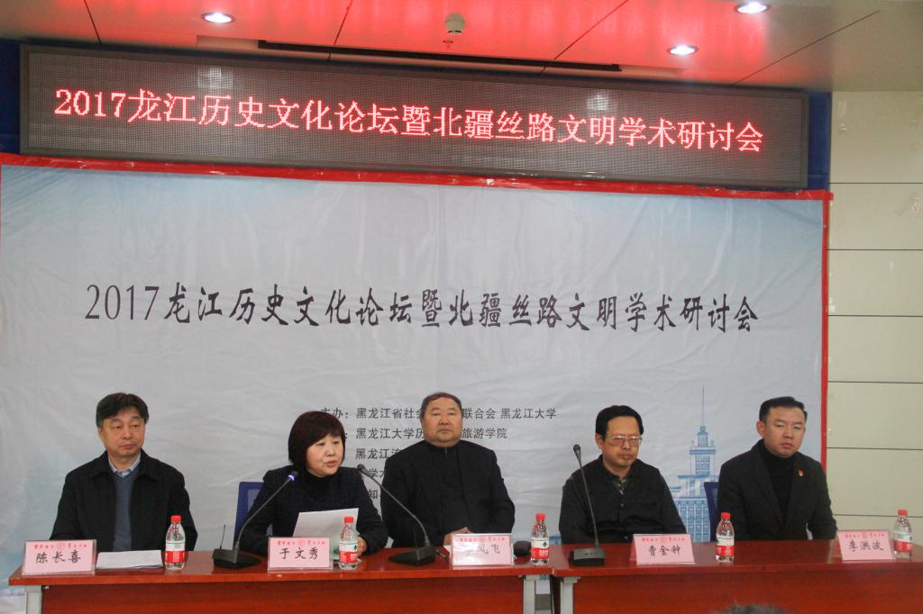 12月9日,“2017龍江歷史文化論壇暨北疆絲路文明學術研討會”在我校主樓A226會議室召開,于文秀副校長出席開幕式并致辭。于校長代表學校對會議的召開表示熱烈的祝賀,并向出席本次會議的嘉賓及與會專家表示熱烈的歡迎。于校長指出,在當前文化大發展大繁榮的新時代,如何既往開來,發掘傳承優秀龍江文化,弘揚北疆絲路文明,已成為我省相關專家學者的現實使命,并表示,要通過專家的廣泛交流,為龍江歷史文化發展和北疆絲路文明建設作出積極貢獻。黑龍江省歷史學會會長李鳳飛、黑龍江省社科聯社科信息中心主任曹金鐘也分別致辭。