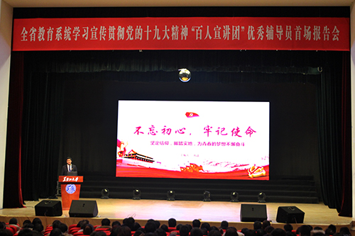 為進一步將學習宣傳貫徹黨的十九大精神推向深入,12月12日下午,由黑龍江省委高校工委、省教育廳聯合主辦,我校承辦的全省教育系統“百人宣講團”——優秀輔導員首場報告會在校音樂廳舉行。省委高校工委宣傳部部長、省教育廳思政處處長劉鐸、省教育廳思政處副處長馬旭,哈爾濱理工大學、哈爾濱醫科大學等7所在哈高校的輔導員和學生代表近700人參加了報告會。報告會由我校學工部部長、學生處處長李石主持。