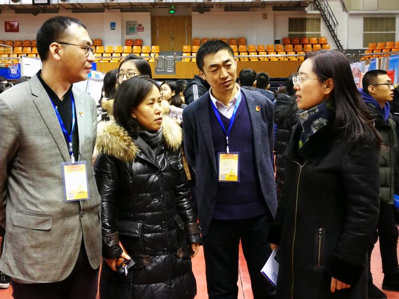 我校黨委副書記丁宏走訪了洽談會現場,了解現場正在進行招聘的用人單位的需求,并詢問了2018屆畢業生的求職情況。丁宏副書記指出,通過大型招聘會,不僅能為全校未就業學生搭建平臺,增強學生主動就業的意識,還能鞏固學校已有的就業基地,開拓新的招聘市場,給學生增加更多選擇機會。她表示,學校作為就業單位,在以學生為本的基礎上,將努力讓更多企業進入學校,把握好用人單位的質量和數量,全力以赴為學生服務。同時,她要求學校就業工作相關負責人進一步加強對學生的學業就業指導,幫助學生順利完成學業、實現就業,舉辦好各層次招聘會,積極引導學生樹立正確的學習觀、成才觀、就業觀、創業觀。