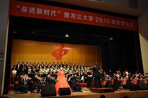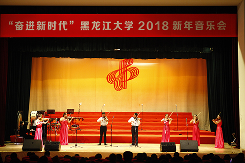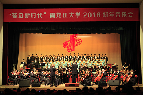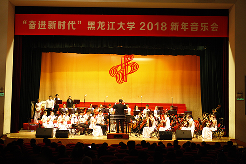 辭舊迎新,共享視聽盛宴;繼往開來,譜寫黑大華章。12月29日,“奮進新時代”我校2018新年音樂會在音樂廳華麗奏響。本次音樂會由黨委宣傳部、校團委、藝術學院聯合主辦。校黨委書記劉德權,校長付宏剛,黨委副書記蔣晶潔、丁宏,副校長陳文遠、于文秀,工會主席陳德明,部分離退休領導、職能部門負責人與師生代表一同共享高雅的音樂盛宴。