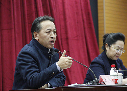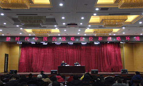 1月11日下午,我校主樓一樓報告廳舉行黨的十九大精神專題報告會,邀請我校校友、中國駐巴西里約熱內(nèi)盧總領(lǐng)事李楊做了題為“新時代中國的戰(zhàn)略定位和戰(zhàn)略環(huán)境”的報告。我校全體中層干部,省級重點學(xué)科帶頭人、省級領(lǐng)軍人才梯隊帶頭人及后備帶頭人、校級學(xué)科帶頭人,馬克思主義學(xué)院全體教師參加報告會。黨委副書記蔣晶潔主持報告會。