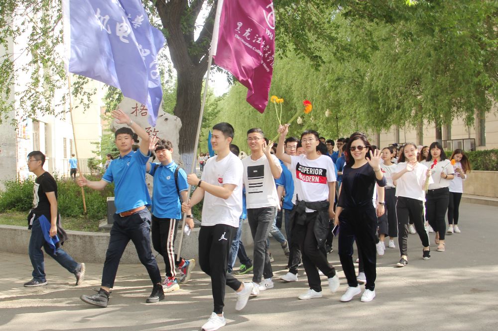 在徒步行進(jìn)過(guò)程中,大家精神飽滿,情緒高漲,用相機(jī)記錄下母校的美麗風(fēng)景,畢業(yè)生們沿途唱起了校歌,“歲月的長(zhǎng)河淘盡沉沙,歷史的風(fēng)雨洗卻鉛華……”。青春不老,我們不散。或許明日我們就各奔東西,但黑大的心不變、記憶中的時(shí)光不變、此間的感動(dòng)不變。